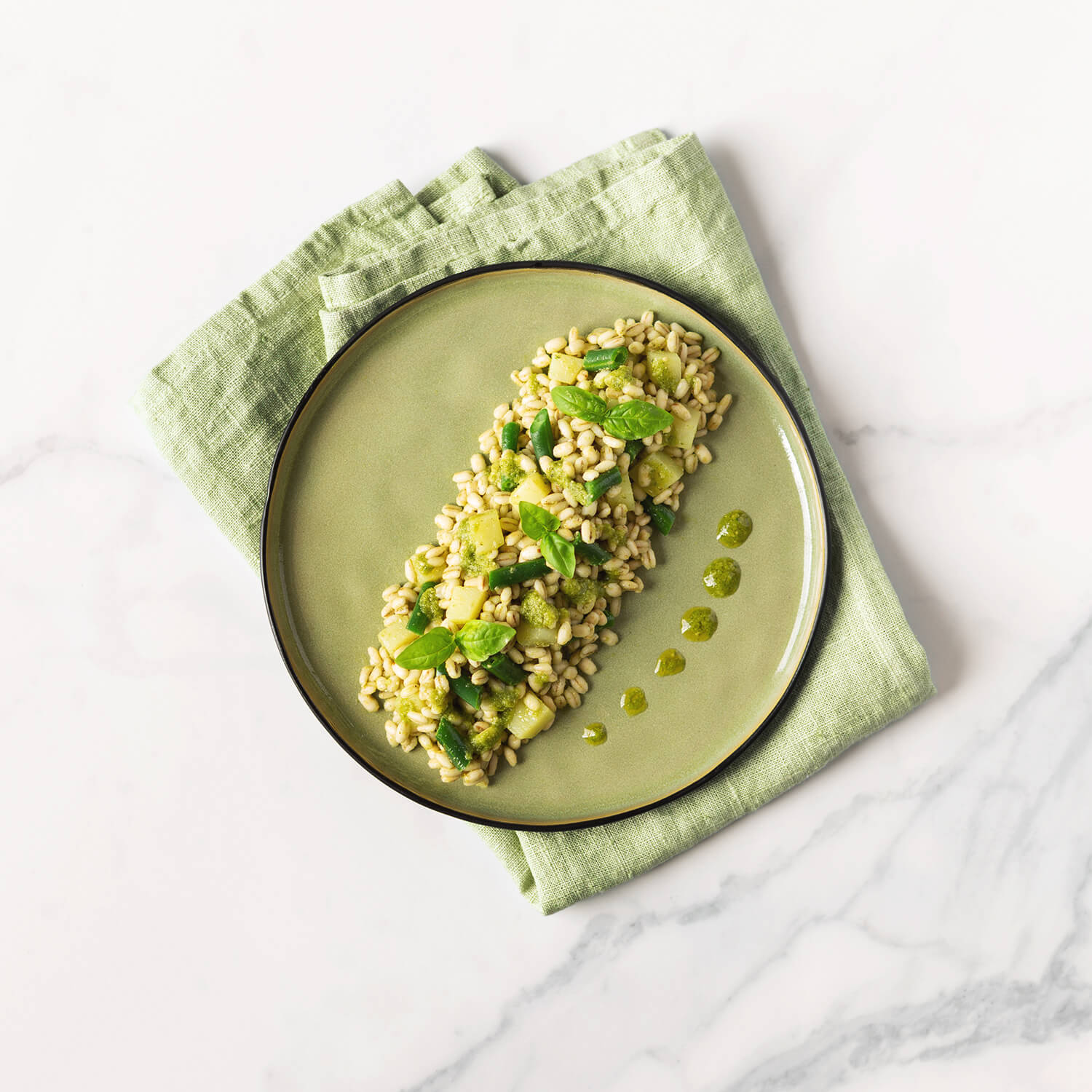q.b. sale, pepe nero, olio evo, basilico